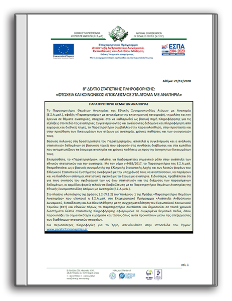 8ο Δελτίο Στατιστικής Πληροφόρησης: «Φτώχεια και Κοινωνικός Αποκλεισμός στα Άτομα με Αναπηρία»