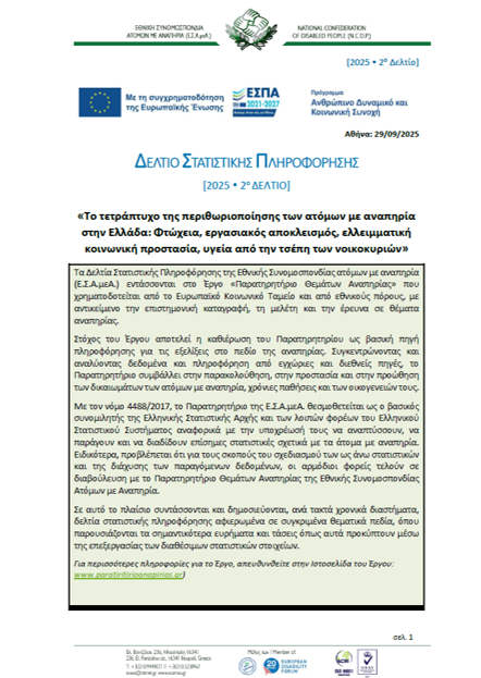 - Εργασιακός Αποκλεισμός: Η συμμετοχή των ατόμων με αναπηρία στον οικονομικά ενεργό πληθυσμό είναι μόλις 25,3%, δεύτερη χαμηλότερη τιμή του δείκτη στην ΕΕ
