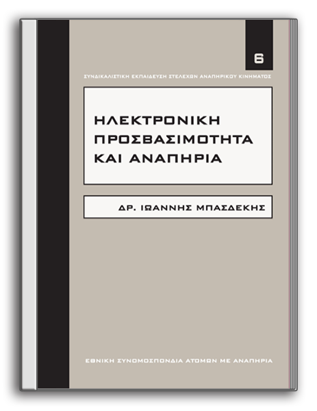 Παρακάτω παρουσιάζεται το εγχειρίδιο που εκπονήθηκε για την Ηλεκτρονική Προσβασιμότητα (ISBN: 978-618-80249-4-6) από τον Δρ. Ιωάννη Μπασδέκη. Ο Δρ. Ιωάννης Μπασδέκης είναι διδάκτωρ πληροφορικής του Πανεπιστημίου KENT του Ην. Βασιλείου, και απόφοιτος του ΕΚΠΑ από όπου έχει λάβει πτυ-χίο Εφαρμοσμένων Μαθηματικών και Στατιστικής, καθώς και μεταπτυχιακό τίτλο Πληροφορικής στην κατεύθυνση προηγμένων πληροφοριακών συστημά-των με διακρίσεις. Από το 2002 είναι στέλεχος του Ινστιτούτου Πληροφορικής του Ιδρύματος Τεχνολογίας και Έρευνας, με κύρια ερευνητική κατεύθυνση την ηλεκτρονική προσβασιμότητα και ευχρηστία του περιεχομένου του διαδικτύου, ενώ έχει συμμετάσχει ως επικεφαλής σε πλήθος ευρωπαϊκών και εθνικών χρη-ματοδοτούμενων έργων. Την περίοδο 2000-2001 διατέλεσε επιστημονικός σύμβουλος της Υφυπουργού Υγείας με αντικείμενο το σχεδιασμό του πρόδρο-μου Χάρτη Υγείας, ενώ το 1998-2000 υπηρέτησε ως Έφεδρος Αξιωματικός του Σώματος Έρευνας και Πληροφορικής του ΓΕΣ.
