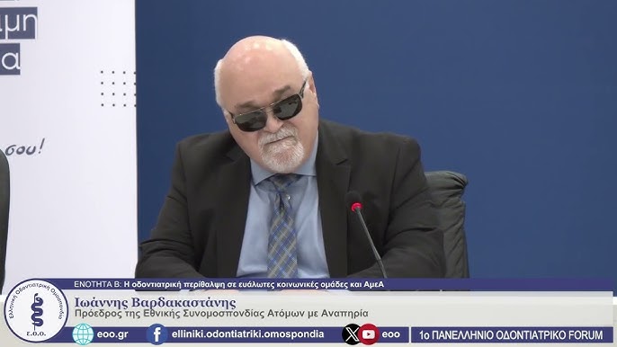 Στο 1ο Πανελλήνιο Οδοντιατρικό Forum με θέμα «Στοματική Υγεία: Από την Πρόληψη στη Βιώσιμη Φροντίδα» που διοργάνωσε η Ελληνική Οδοντιατρική Ομοσπονδία, με αφορμή την Παγκόσμια Ημέρα Στοματικής Υγείας, μίλησε ο πρόεδρος της ΕΣΑμεΑ Ιωάννης Βαρδακαστάνης, την Πέμπτη 20 Μαρτίου.