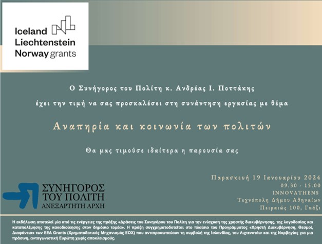 Στη συνάντηση εργασίας με θέμα «Αναπηρία και κοινωνία των πολιτών» που διοργάνωσε ο Συνήγορος του Πολίτη μίλησε ο πρόεδρος της ΕΣΑμεΑ Ι. Βαρδακαστάνης την Παρασκευή 19 Ιανουαρίου 2024.