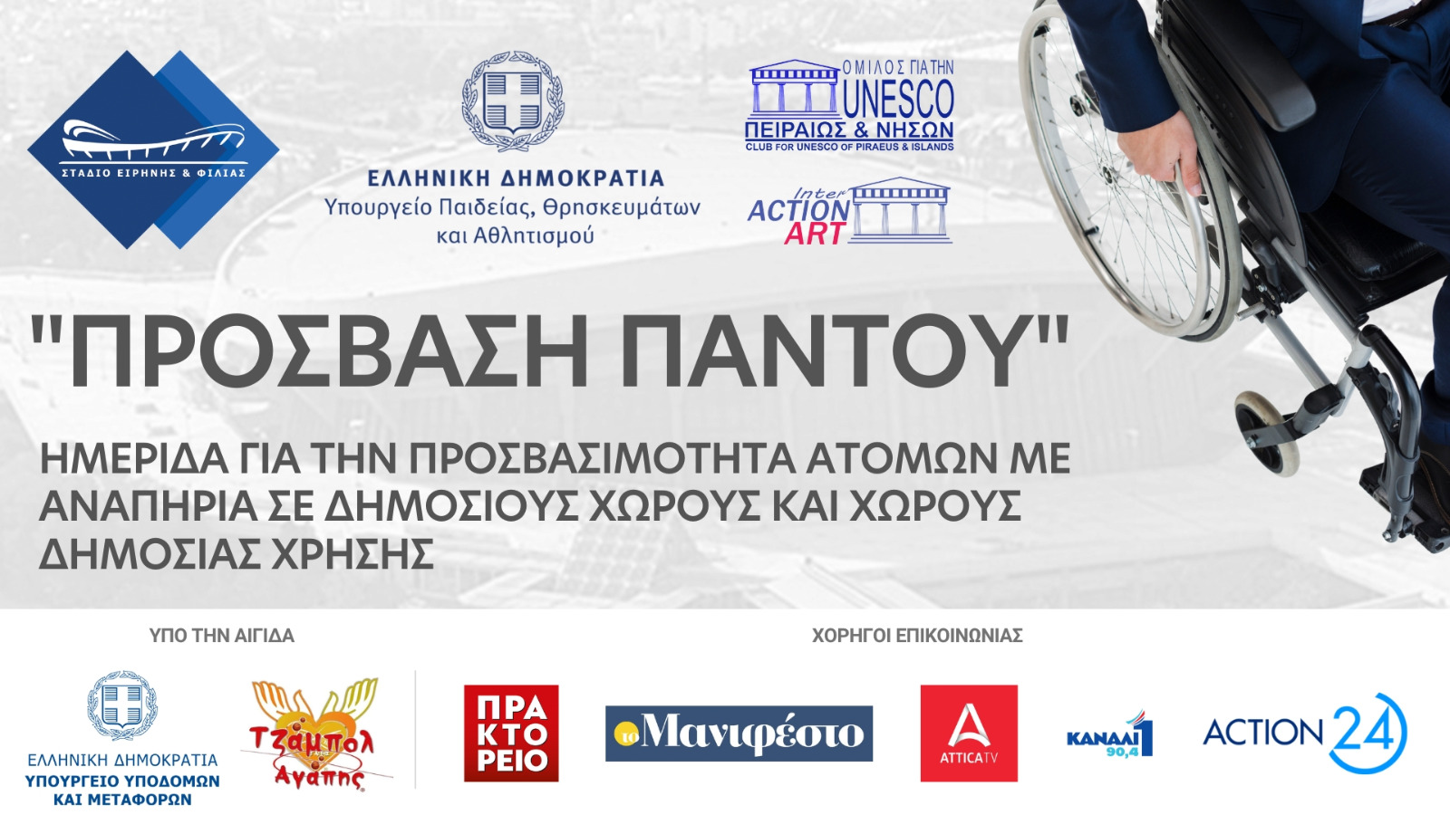 Στην 3η ημερίδα «Πρόσβαση Παντού», που συνδιοργανώθηκε από το Στάδιο Ειρήνης και Φιλίας με την ΟΥΝΕΣΚΟ Πειραιώς και Νήσων, στο πλαίσιο της παγκόσμιας Ημέρας Ενημέρωσης για τον Αυτισμό, καθώς και της εναρμόνισης της ελληνικής νομοθεσίας με την Οδηγία (EE) του Ευρωπαϊκού Κοινοβουλίου και του Συμβουλίου της 17ης Απριλίου 2019 σχετικά με τις απαιτήσεις προσβασιμότητας προϊόντων και υπηρεσιών, στο φουαγιέ της αίθουσας Μελίνας Μερκούρη στο ΣΕΦ, χαιρέτησε εκ μέρους του προέδρου της ΕΣΑμεΑ Ιωάννη Βαρδακαστάνη, ο γενικός γραμματέας της ΕΣΑμεΑ Βασίλης Κούτσιανος, την Τρίτη 2 Απριλίου.