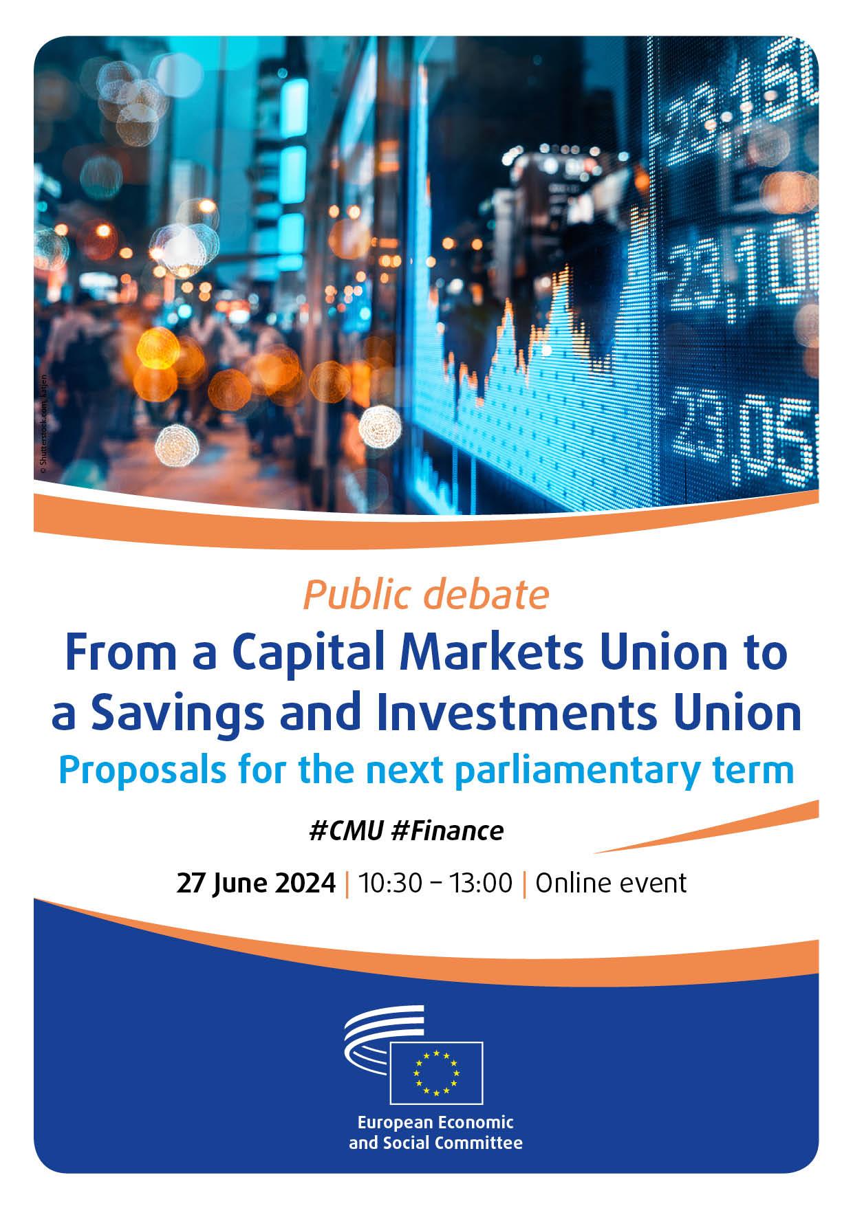 Τον δημόσιο διάλογο του Τμήματος «Οικονομική και Νομισματική Ένωση, οικονομική και κοινωνική συνοχή» (ECO) της ΕΟΚΕ «From a Capital Markets Union to a Savings and Investments Union - Proposals for the next parliamentary term» (Από Ένωση Κεφαλαιαγορών σε Ένωση Ταμιευτηρίου και Επενδύσεων - Προτάσεις για την προσεχή βουλευτική περίοδο), άνοιξε με ομιλία του ο πρόεδρος της ΕΣΑμεΑ και πρόεδρος του Τμήματος ECO Ιωάννης Βαρδακαστάνης, την Πέμπτη 27 Ιουνίου.