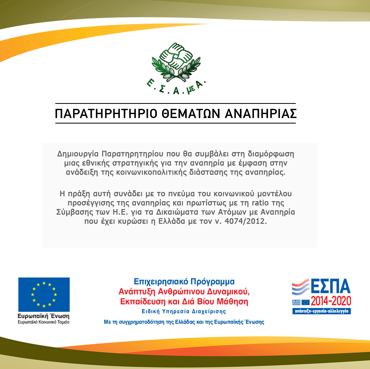 - 30.03.2018 Ιστοσελίδα της Πράξης «Παρατηρητήριο Θεμάτων Αναπηρίας» της ΕΣΑμεΑ (Ενημέρωση: Νέα/Ανακοινώσεις)