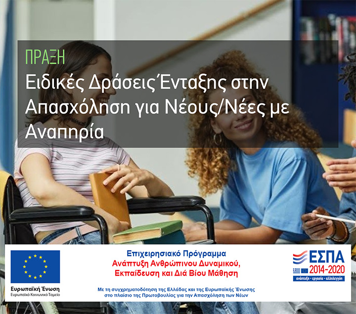 Η Εθνική Συνομοσπονδία Ατόμων με Αναπηρία (Ε.Σ.Α.μεΑ.) ΝΠΙΔ μη κερδοσκοπικού χαρακτήρα, ως δικαιούχος της Πράξης «Ειδικές Δράσεις Ένταξης στην Απασχόληση για Νέους/Νέες με Αναπηρία» με κωδικό ΟΠΣ 5073491, στο Επιχειρησιακό Πρόγραμμα «Ανάπτυξη Ανθρώπινου Δυναμικού, Εκπαίδευση και Δια Βίου Μάθηση 2014-2020» με την με αρ. πρωτ. 1371/07.04.2021 Απόφαση της Ειδικής Γραμματέας Διαχείρισης Προγραμμάτων Ευρωπαϊκού Κοινωνικού Ταμείου, όπως τροποποιήθηκε και ισχύει (Α.Π.:2799/14-02-2024 3η Τροποποίηση της Πράξης), προσκαλεί σύμφωνα με την Νο 52/12.03.2024 Απόφαση της Εκτελεστικής Γραμματείας της οικονομικούς φορείς να εκδηλώσουν ενδιαφέρον για τη σύναψη σύμβασης έργου για το έργο «ΕX POST εξωτερική αξιολόγηση του Έργου» (Υποέργο 4) στο πλαίσιο της ως άνω Πράξης. Η Πράξη συγχρηματοδοτείται από την Πρωτοβουλία για την Απασχόληση των Νέων (ΠΑΝ).