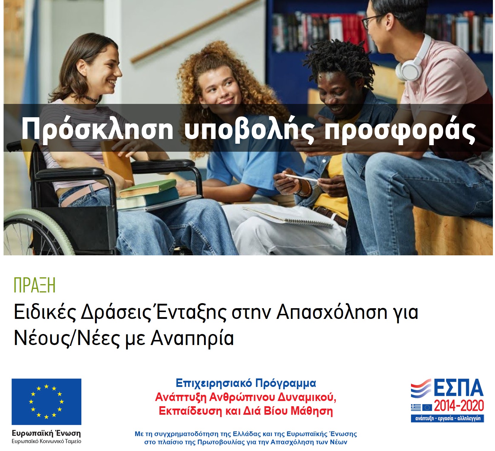 - 28.05.2021 ΠΡΑΞΗ: «Ειδικές Δράσεις Ένταξης στην Απασχόληση για Νέους/Νέες με Αναπηρία» (Έργα: Εθνικά)
