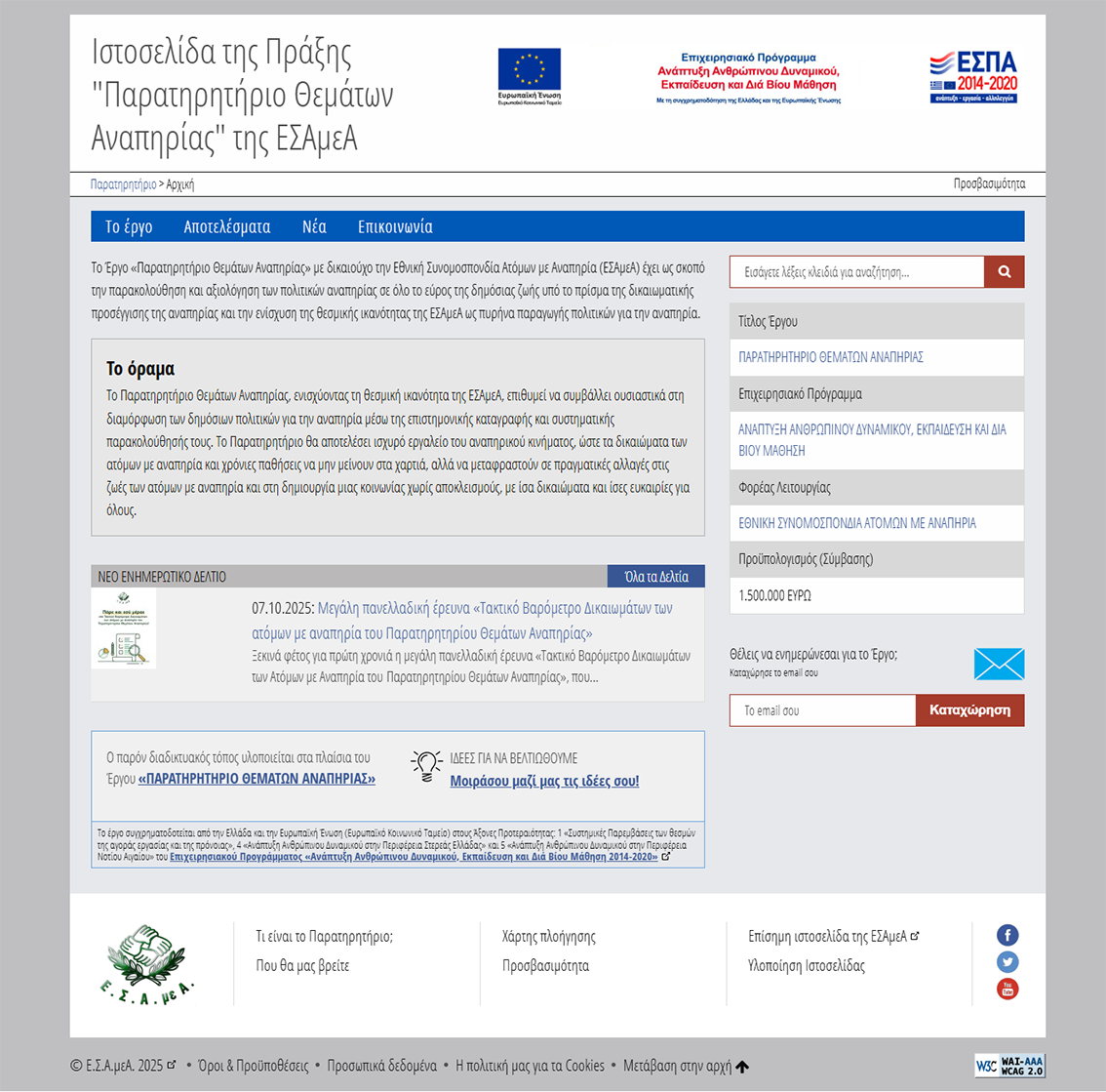 Ιστοσελίδα της Πράξης «Παρατηρητήριο Θεμάτων Αναπηρίας» της ΕΣΑμεΑ