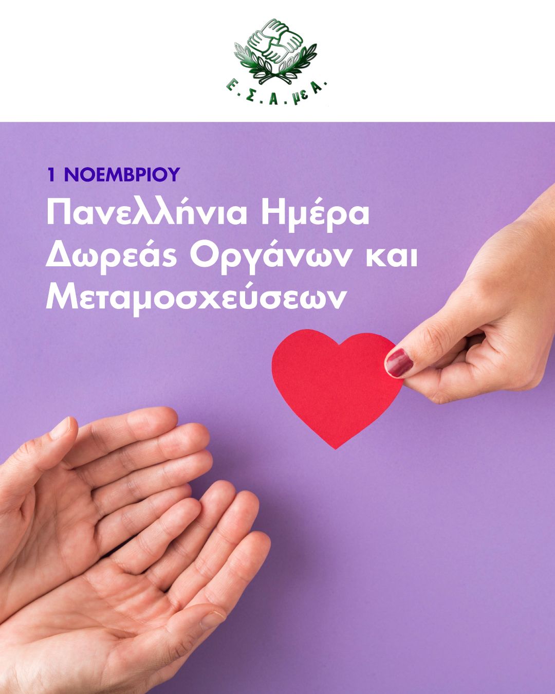 1η Νοεμβρίου 2025 - Πανελλήνια Ημέρα Δωρεάς Οργάνων και Μεταμοσχεύσεων