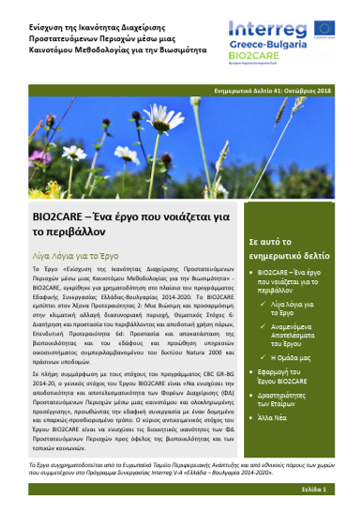 Στα πλαίσια του Έργου Reinforcing protected areas capacity through an innovative methodology for sustainability (BIO2CARE), εκδόθηκε από την ΕΣΑμεΑ το 1ο Ενημερωτικό Δελτίο του Έργου σε διάφορες προσβάσιμες μορφές.