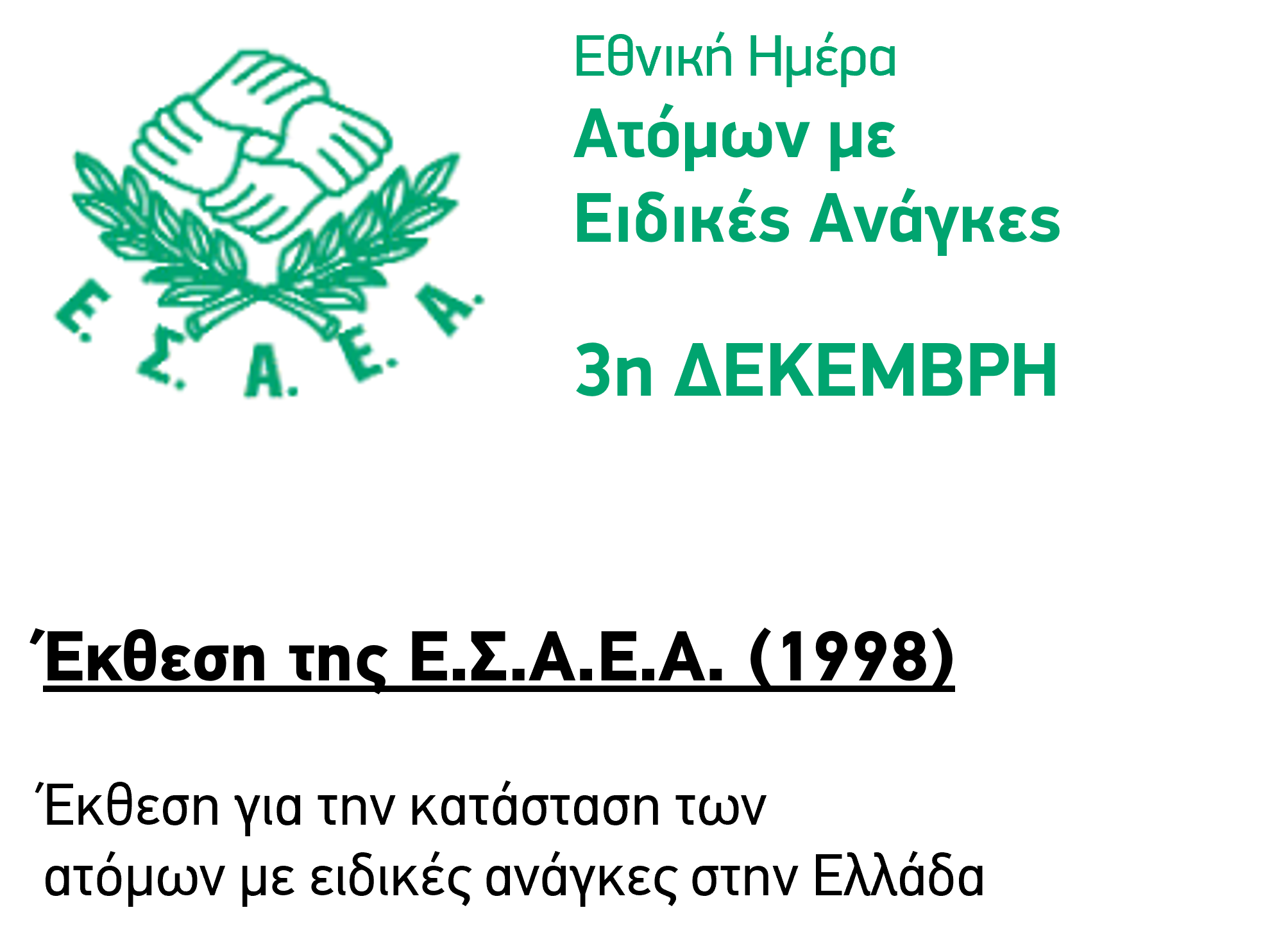 Έκθεση της Ε.Σ.Α.Ε.Α. στο πλαίσιο της 3η Δεκέμβρη 1998 - Εθνικής Ημέρας Ατόμων με Ειδικές; Ανάγκες