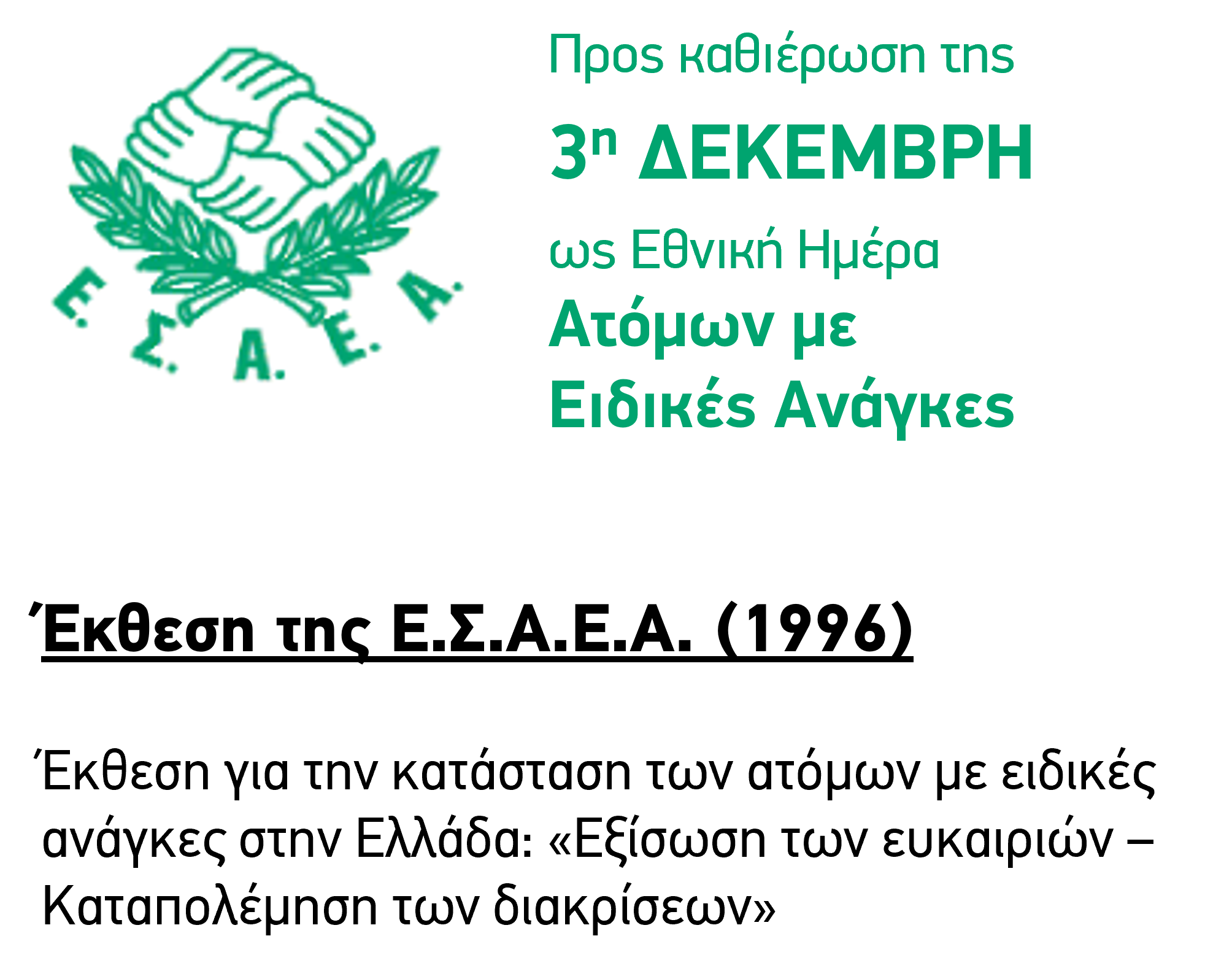 Έκθεση έτους 1996 της Ε.Σ.Α.Ε.Α. για την καθέρωση της 3η Δεκέμβρη ως Εθνική Ημέρα Ατόμων με Ειδικές Ανάγκες