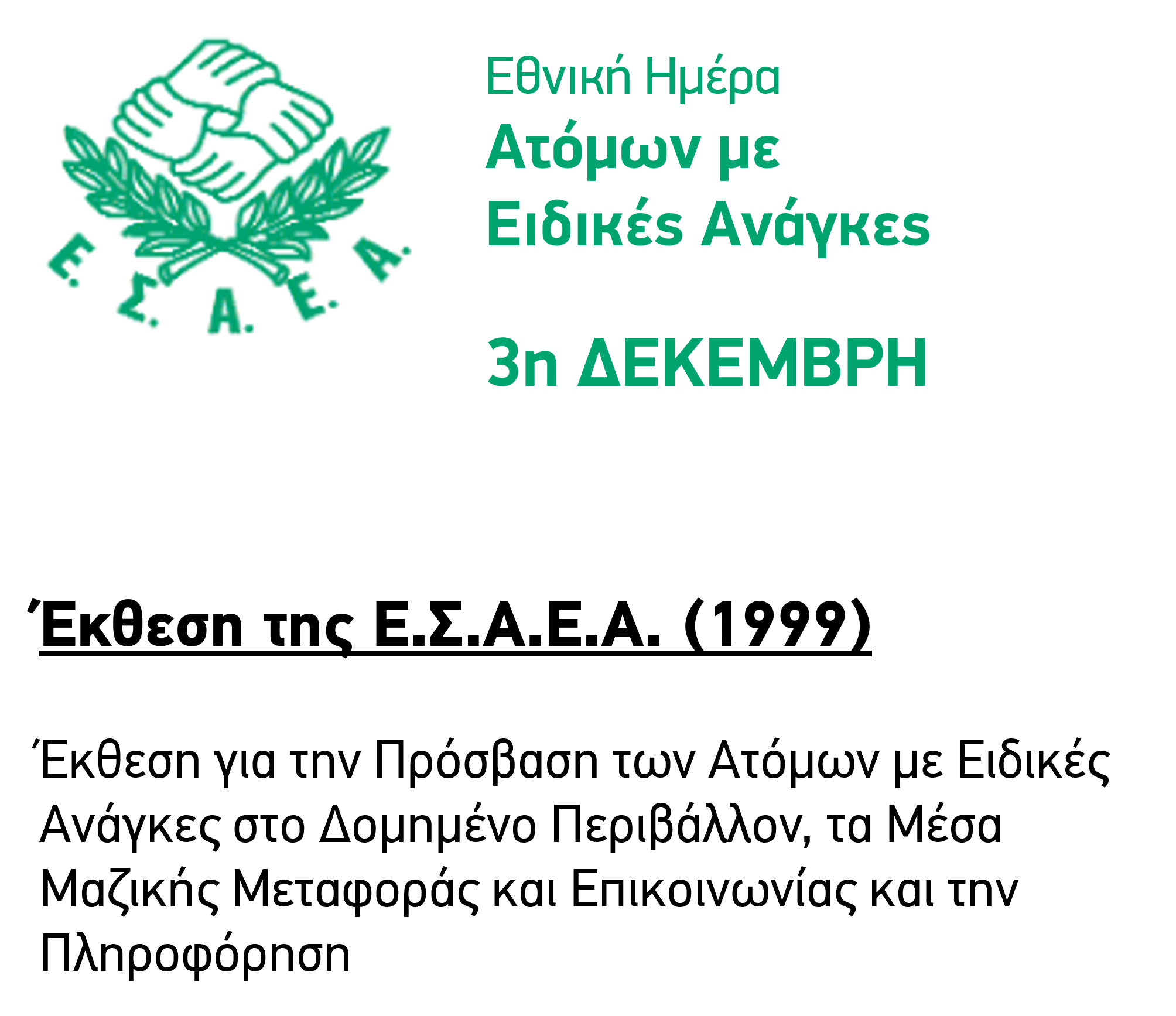 Έκθεση για την Πρόσβαση των Ατόμων με Ειδικές Ανάγκες στο Δομημένο Περιβάλλον, τα Μέσα Μαζικής Μεταφοράς και Επικοινωνίας και την Πληροφόρηση