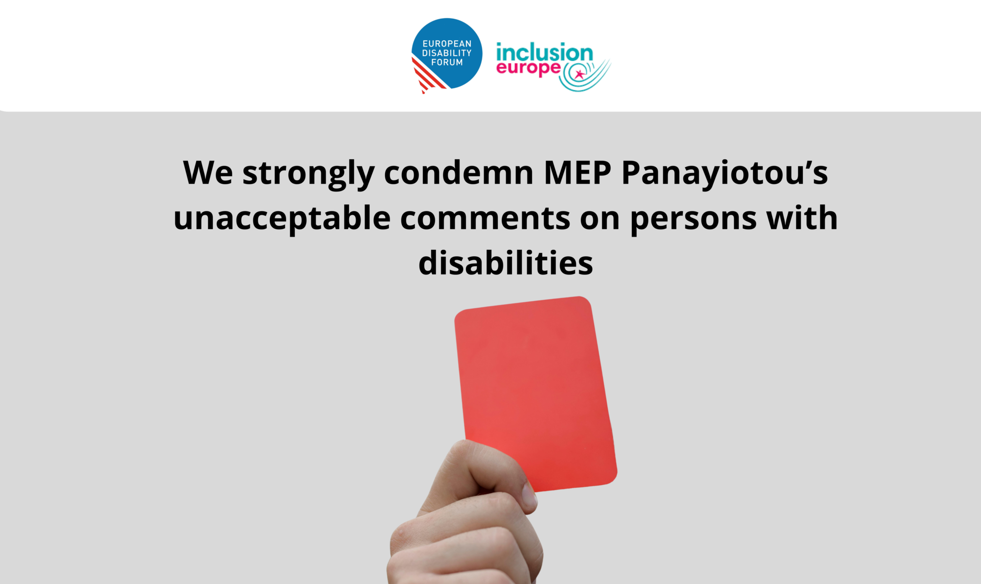 Αναμένουμε την άμεση απολογία του ευρωβουλευτή Παναγιώτου. Τον καλούμε να προάγει τον σεβασμό και τα δικαιώματα των ατόμων με αναπηρία, αντί να χλευάζει και να βλάπτει».