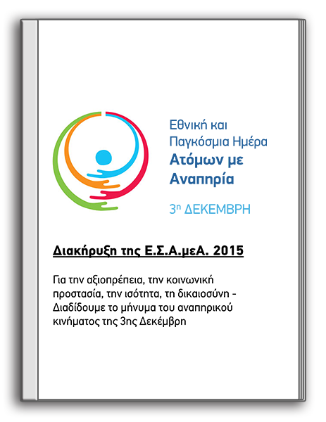 Διακήρυξη της Ε.Σ.Α.μεΑ. για την 3η Δεκέμβρη 2015 - Εθνική και Παγκόσμια Ημέρα Ατόμων με Αναπηρία