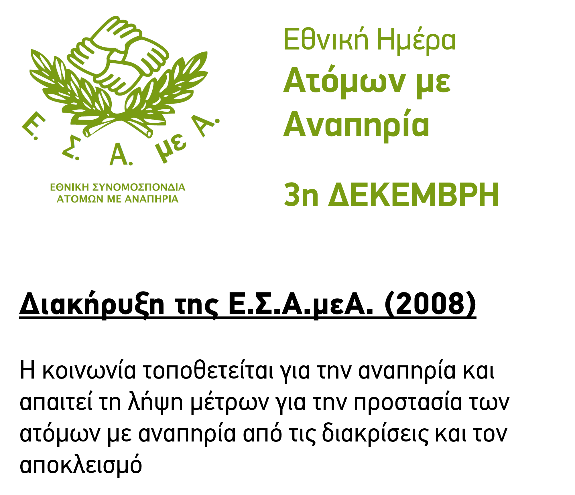 Διακήρυξη της Ε.Σ.Α.μεΑ. για την 3η Δεκέμβρη 2008 - Εθνική Ημέρα Ατόμων με Αναπηρία