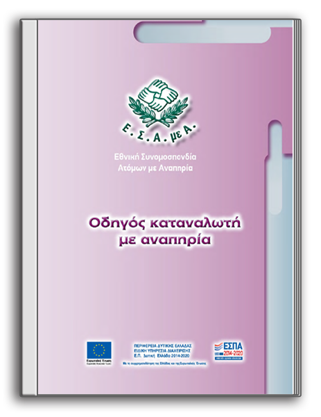 Ο παρών «Οδηγός καταναλωτή με αναπηρία» εκπονήθηκε από την Εθνική Συνομοσπονδία Ατόμων με Αναπηρία (Ε.Σ.Α.μεΑ.) στο πλαίσιο υλοποίησης του Υποέργου 4 (Π.Ε.1, Π.1.4) της Πράξης «Προωθώντας την κοινωνική ένταξη των ατόμων με αναπηρία, χρόνιες παθήσεις και των οικογενειών τους που διαβιούν στην Περιφέρεια της Δυτικής Ελλάδας».