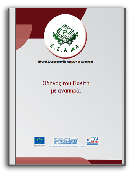 Ο παρών «Οδηγός του Πολίτη με Αναπηρία» εκπονήθηκε από την Εθνική Συνομοσπονδία Ατόμων με Αναπηρία (Ε.Σ.Α.μεΑ.) στο πλαίσιο υλοποίησης του Υποέργου 4 (Π.Ε.4, Π4.1) της Πράξης «Προωθώντας την κοινωνική ένταξη των ατόμων με αναπηρία, χρονιές παθήσεις και των οικογενειών τους που διαβιούν στην Περιφέρεια Δυτικής Ελλάδας», η οποία έχει ενταχθεί στο Επιχειρησιακό Πρόγραμμα «Δυτική Ελλάδα 2014-2020». Η Πράξη, με δικαιούχο την Ε.Σ.Α.μεΑ. εντάσσεται στο Επιχειρησιακό Πρόγραμμα «Δυτική Ελλάδα 2014-2020» και συγχρηματοδοτείται από το Ευρωπαϊκό Κοινωνικό Ταμείο (ΕΚΤ) και από Εθνικούς Πόρους.