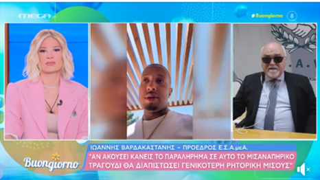 Παρέμβαση στην εκπομπή Buongiorno (Mega TV) του προέδρου Ε.Σ.Α.μεΑ. Ι. Βαρδακαστάνη μετά τη συνεδρίαση του Εθνικού Συμβουλίου κατά του Ρατσισμού και της Μισαλλοδοξίας για τα τελευταία γεγονότα