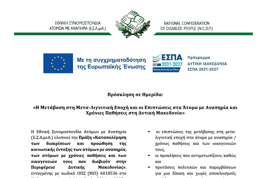 «Η Μετάβαση στη Μετα-Λιγνιτική Εποχή και οι Επιπτώσεις στα Άτομα με Αναπηρία και Χρόνιες Παθήσεις στη Δυτική Μακεδονία».